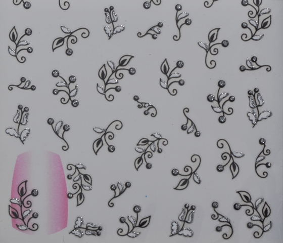 3D Nail Sticker schwarz/weiss Ornamentblüten