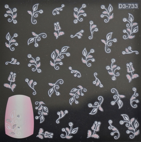 Glitter-Nail Sticker rosa silber Blüten-Ranken