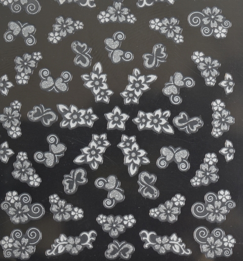 Nail Sticker Blumen weiß/silber