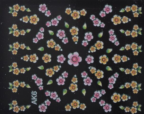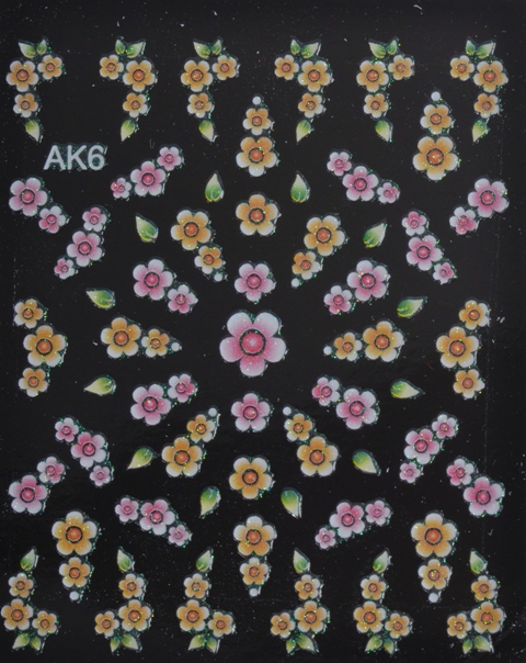 Nailsticker Blümchen rosé, gelb, grüne Blätter Glitter