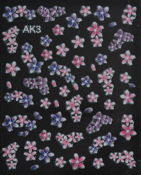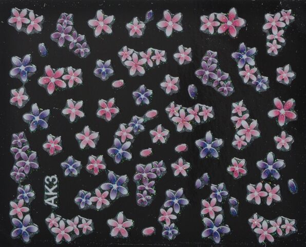 Nailsticker Blümchen rosé/weiß und lila/weiß mit Glitzer