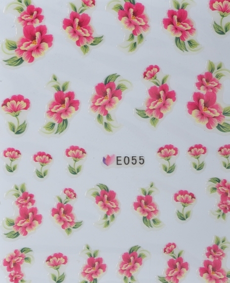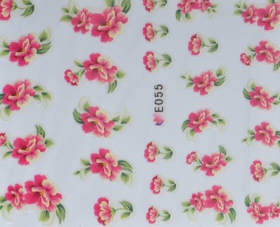 Nailsticker Hauchdünn rot/gelbe Blüten mit grünen Blätter