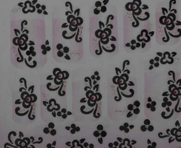 Nailsticker schwarze Blüten mit rot und silber